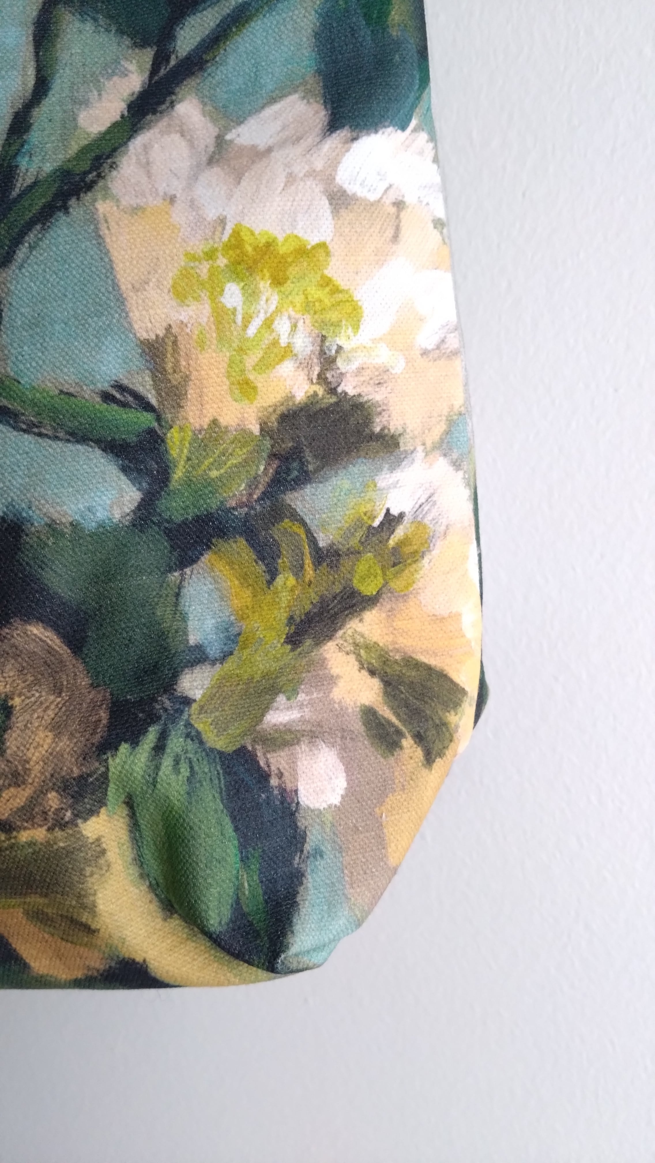 裏地の色は薄い黄緑、ポケットが1つ、マグネットボタンが付いています。